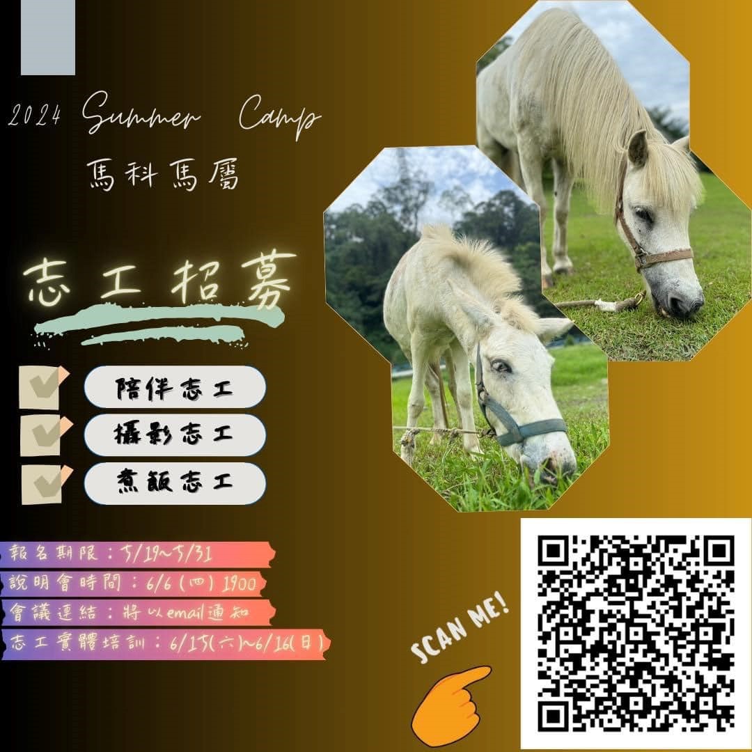 猜猜看 圖片中的兩隻小夥伴有什麼不一樣呢? 2024的暑假,全新主題 台灣兒童發展協會馬匹輔助教育中心暑假特殊生營隊志工招募囉! 營隊中透過動物輔助教育,讓孩子們用不一樣的角度經驗成長 陪伴的過程,孩子也讓我們經驗到不一樣的相處,從中練習與自己和孩子共處。 喜歡動物喜歡特殊生孩子的夥伴不要錯過唷! 需要熱血有耐心的夥伴一同加入! 不認識動物沒關係,但有一顆熱誠的心,歡迎你一起來試看看。 報名時間:6/5-6/10 說明會時間:6/11(二)晚上七點 會議連結:將以email通知 志工實體培訓:6/15(六)~6/16(日) (若有住宿方面的困難,可私訊討論) 報名連結 https://forms.gle/EywncwwXpNdKsoch8