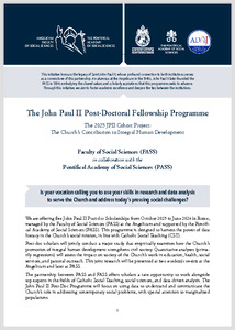 分類: 工讀與獎學金, 其他公告 來源: 國際事務處國際學生組 - 陳良愛 - issa@gms.ndhu.edu.tw - 電話5107 對象: 全校教職員_全校學生 標題: 【轉知】教廷羅馬宗座天使大學及宗座社會科學院提供5名若望保祿二世博士後學人獎學金資訊 日期: 2025-03-05  ( 星期三 )  16:11 附檔: 附件一 (1).pdf (227 KB)