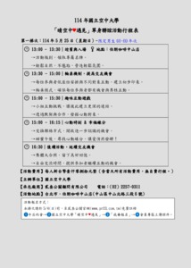 分類: 其他公告 來源: 人事室 - 莊博凱 - jonhnny77@gms.ndhu.edu.tw - 電話6057 對象: 全校教職員_兼任教師 標題: 【轉知】國立空中大學辦理114年「晴空中❤️遇見」單身聯誼活動計2梯次 日期: 2025-03-28  ( 星期五 )  18:28 附檔: 附件1.pdf (121 KB)   附件2.pdf (141 KB)