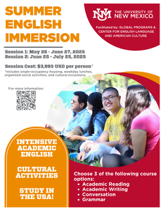 English version in below ◎時間:2025.6.25~2025.7.25 ◎地點:新墨西哥大學 ◎費用:USD 3530~3785 約NTD 120,000 (費用中不包含機票、簽證費用、旅遊及其他個人花費) ◎報名時間:2025.5.15截止 ◎報名流程 1.填寫google 表單向國際處報名,同時繳交以下文件: Google form:https://reurl.cc/2jAzQ9 在學證明 家長同意書 (下載範本Form:海外短期交流家長同意書https://oia.ndhu.edu.tw/var/file/27/1027/img/920907695.doc ) 2.自行到姊妹校提供之連結報名: https://forms.office.com/pages/responsepage.aspx?id=MJiqJfngK0iJfho7PIVeXC4s7mqFhYpMki0Q50bir7xUNkpMMjNGM0NNRjBORFNCMk1DSjMxWlJTSS4u&route=shorturl 3.等待姐妹校通知 ◎注意事項: 1.有任何申請問題可以聯繫活動承辦人: celac@unm.edu 2.具體申請細節及其他資訊請詳閱簡章。 2.具體申請細節及其他資訊請詳閱簡章。 3.活動結束後請依照格式繳交心得報告至國際處網站:https://oia.ndhu.edu.tw/p/412-1027-21515.php?Lang=zh-tw 4.國際處僅公告或協助本校學生報名參加簽約校的短期活動或課程,其短期課程是否可抵免本校學分,參加學生需遵照教務處相關規定辦理。若活動日期為本校學期上課期間,學生須依照本校規定自行辦理請假手續。 ◎更多資訊 https://www.youtube.com/watch?v=S8gW4CKujkY https://www.mnsu.edu/academics/global-education/centers-of-global-education/center-for-english-language-programs/about-center-for-english-language-program/ English version ◎Period:2025.6.25~2025.7.25 ◎Location:University of New Mexico ◎Fee:USD 3530~3785 around NTD 120,000 Fee does not include airfare, visa fees, traveling, and other personal expenses ◎Registration Deadline:Until 2025.5.15 ◎Registration Process 1. Sign up via google form and upload below documents to OIA. Google form:https://reurl.cc/2jAzQ9 Student Status Certificate Parental Consent Letter(Form:Parental Consent Letter https://oia.ndhu.edu.tw/var/file/27/1027/img/920907695.doc ) 2. Complete application at: https://forms.office.com/pages/responsepage.aspx?id=MJiqJfngK0iJfho7PIVeXC4s7mqFhYpMki0Q50bir7xUNkpMMjNGM0NNRjBORFNCMk1DSjMxWlJTSS4u&route=shorturl 3. Await the announcement from sister school. ◎Please note: 1.For any application inquiries, please contact the program organizer at: celac@unm.edu 2.For detailed application instructions and other information, please refer to the brochure. 3. After the event, please submit a reflection report according to the specified format:https://oia.ndhu.edu.tw/p/412-1027-21515.php?Lang=en 4.OIA only announces or assists our school’s students in registering for short-term activities or courses offered by contracted schools. Whether credits from these short-term courses can be transferred to our school is subject to the regulations of the Academic Affairs Office, and participating students must comply accordingly. If the activity falls within our school’s academic semester, students must follow our school’s regulations to apply for leave of absence. ◎More information https://www.youtube.com/watch?v=S8gW4CKujkY https://www.mnsu.edu/academics/global-education/centers-of-global-education/center-for-english-language-programs/about-center-for-english-language-program/