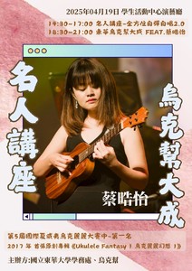 親愛的同學們: 音樂無國界,而烏克麗麗的可能性更是無限!這次,我們誠摯邀請「國際級多樂器演奏家蔡晧怡」,帶來一場兼具深度與魅力的「音樂講座」與「演奏會」,讓大家一起感受跨文化的音樂饗宴! 📌 活動資訊 (1)音樂講座——WORKSHOP《全方位自彈自唱2.0》 📅 時間:2025/04/19 (六) 14:30進場15:00開始 📍 地點:國立東華大學學活園區演藝廳 👇參與方法:直接至現場即可 👉預備知識:需了解基礎烏克麗麗和弦! ⚙️上課用具:需自備烏克麗麗,現場僅有少量烏克麗麗可借用~ *此活動無時數,活動(2)才有 ♪‧₊🎵•*¨*•.¸¸♪✧♫•*¨*•.¸¸♪*✩‧₊🎵•*¨*•.¸¸♪ 🎶 關於蔡晧怡老師 擁有琵琶與烏克麗麗雙重演奏家身份,具有十年的表演經驗,晧怡老師的音樂融合古典、爵士、夏威夷及傳統亞洲音樂,打造獨特的音樂語言,並以突破文化界限的音樂體驗聞名。 🏅表演經歷&得獎經驗🏆 ✧台灣世界音樂節、台中爵士音樂節、印尼 Kampung Buntoi 音樂節 ✧第 5 屆國際夏威夷烏克麗麗大賽冠軍 📼作品 2017 年發行首張原創專輯《Ukulele Fantasy 1》 展開巡演,足跡遍及日本、韓國、菲律賓、澳洲、馬來西亞及中國 ⑅ --- ・ --- ・ --- ・ ------ᦏᦑ------ ・ --- ・ --- ・ --- ⑅ 📌 活動資訊 (2)烏克幫大型成果發表會:蔡晧怡老師 & 烏克幫聯合演出 📅 時間:2025/04/19 (六) 18:30進場19:00開始 📍 地點:國立東華大學學活園區演藝廳 👉 跨域時數報名連結:https://sys.ndhu.edu.tw/SA/XSL_ApplyRWD/ActAnnounce.aspx?ActID=25076 本活動提供多元學習跨域時數2小時 ♪‧₊🎵•*¨*•.¸¸♪✧♫•*¨*•.¸¸♪*✩‧₊🎵•*¨*•.¸¸♪ 🎶 關於東華烏克幫 目前為第13屆幹部與社員、榮譽幹部們所組成的表演團隊,擁有東華之夜表演及329 U Show 青年節、快閃活動,並舉辦各式迎新、小型成果發表等表演經驗。以烏克麗麗、木箱鼓、Bass、主唱組成之配置的輕音社團,以培養學生團隊精神、推廣烏克麗麗彈奏之研習,提倡正當娛樂、陶冶性,及協助愛好烏克麗麗音樂者有學習機會為宗旨。 這不只是一場音樂會,也是一次與國際級演奏家近距離交流的難得機會!🎵 趕快邀請朋友,一起來探索烏克麗麗的無限可能吧! 🎶 快來了解更多活動資訊! 東華烏克幫FB:https://www.facebook.com/share/16MhHyBzoK/ 東華烏克幫IG: https://www.instagram.com/ndhu_ukulele?igsh=MTBhd2Y0bmloMmpmOA== 學務處課外組&學生社團-烏克幫誠摯邀請您~