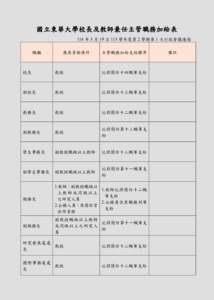 分類: 行政公告 來源: 人事室 - 劉昱淩 - e56187@gms.ndhu.edu.tw - 電話890-6056 對象: 全校教職員 標題: 檢送本校校長及教師兼任主管職務加給表,並自114年8月1日起實施 日期: 2025-04-23  ( 星期三 )  10:41 附檔: 1140324國立東華大學校長及教師兼任主管職務加給表.pdf (168 KB)