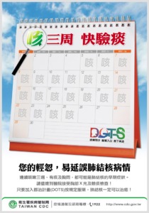 為避免傳染病在校園發生,請加強自我健康篩檢的方法,如有發病之情事,不要緊張,早期發現、早期治療效果更好,咳三週、快驗痰、勤服藥、全都治,當您有疑問時,可電詢行政院衛生署傳染病免費諮詢專線,電話專線為『1922』,24小時全年無休。