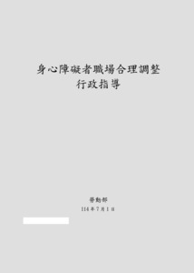 勞動部訂定「身心障礙者職場合理調整行政指導」並自114年7月1日生效。