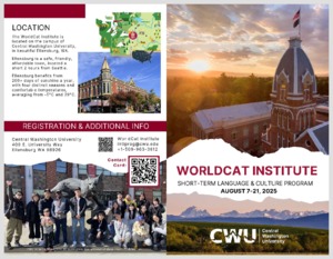 English version in below ◎時間:2025.8.7~2025.8.21 ◎地點:中央華盛頓大學 ◎費用:USD 2500 約NTD 75,000 (費用中不包含機票、簽證費用、保險、旅遊及其他個人花費) ◎報名時間:2025.6.2截止 ◎報名流程 1.填寫google 表單向國際處報名,同時繳交以下文件: Google form:https://reurl.cc/2jAzQ9 在學證明 家長同意書 (下載範本Form:海外短期交流家長同意書https://oia.ndhu.edu.tw/var/file/27/1027/img/920907695.doc ) 2.自行到姊妹校提供之連結報名: WorldCat Institute Contact Card 3.等待姐妹校通知 ◎注意事項: 1.有任何申請問題可以聯繫活動承辦人: intlprog@cwu.edu 2.具體申請細節及其他資訊請詳閱簡章。 2.具體申請細節及其他資訊請詳閱簡章。 3.活動結束後請依照格式繳交心得報告至國際處網站:https://oia.ndhu.edu.tw/p/412-1027-21515.php?Lang=zh-tw 4.國際處僅公告或協助本校學生報名參加簽約校的短期活動或課程,其短期課程是否可抵免本校學分,參加學生需遵照教務處相關規定辦理。若活動日期為本校學期上課期間,學生須依照本校規定自行辦理請假手續。 English version ◎Period:2025.8.7~2025.8.21 ◎Location:Central Washington University, Ellensburg , WA ◎Fee:USD 2500 around NTD 75,000 Fee does not include airfare, visa fees, insurance, food, traveling, and other personal expenses ◎Registration Deadline:Until 2025.6.2 ◎Registration Process 1. Sign up via google form and upload below documents to OIA. Google form:https://reurl.cc/2jAzQ9 Student Status Certificate Parental Consent Letter(Form:Parental Consent Letter https://oia.ndhu.edu.tw/var/file/27/1027/img/920907695.doc ) 2. Complete application at: WorldCat Institute Contact Card 3. Await the announcement from sister school. ◎Please note: 1.For any application inquiries, please contact the program organizer at: intlprog@cwu.edu 2.For detailed application instructions and other information, please refer to the brochure. 3. After the event, please submit a reflection report according to the specified format:https://oia.ndhu.edu.tw/p/412-1027-21515.php?Lang=en 4.OIA only announces or assists our school’s students in registering for short-term activities or courses offered by contracted schools. Whether credits from these short-term courses can be transferred to our school is subject to the regulations of the Academic Affairs Office, and participating students must comply accordingly. If the activity falls within our school’s academic semester, students must follow our school’s regulations to apply for leave of absence.