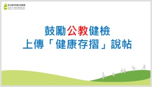 分類: 其他公告 來源: 人事室 - 劉昱淩 - e56187@gms.ndhu.edu.tw - 電話890-6056 對象: 全校教職員 標題: 行政院人事行政總處為協助衛生福利部辦理「鼓勵公教健檢上傳『健康存摺』說帖」 日期: 2025-09-04  ( 星期四 )  08:38 附檔: 來函.pdf (437 KB)   附件一.PDF (290 KB)   附件二.pdf (2 MB)   附件三.pdf (77 KB)