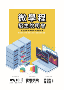 📢 不管你是內向 I 型人,還是外向 E 型人,都能在這裡找到舞台! 我們生活在虛實融合的世界,教育現場其實充滿了數據,但常常藏在角落、不容易被看見。 透過 教育大數據微學程,你將學到: • 基礎 → 進階 → 實務 的完整課程規劃 • 如何把看不見的數字,轉換成能解決問題的洞察 • 跨域結合理工與教育,分析真實教育現象 • 從專題研究到實務應用,讓數據幫你發聲 💡 為什麼要來? 👉 在說明會中,你將獲得 第一手資訊,認識課程內容、修課規劃與未來發展方向。 👉 不論你的專業背景,只要有興趣,就能參與,開啟數據思維,挑戰教育新視野! ◎ 講題:國立東華大學教育大數據計畫—微學程招生說明會 ◎ 講者:資管系侯佳利副教授、資工系陳旻秀副教授 ◎ 時間:114年09月10日(星期三) 下午12:10-下午13:00 ◎ 地點:管理學院第一講堂B210 ◎ 備註: 1.活動備有餐點,請於報名時註記是否用餐及是否吃素。 2.本校學生全程參與本次活動者提供跨域自主學習時數1小時。 3.為方便統計人數與訂購餐點,報名截止至114年09月08日(星期一)17:00為止。 4.報名截止後,欲取消請提早來信告知,以免浪費食物。 ◎ 報名連結: https://sys.ndhu.edu.tw/SA/XSL_ApplyRWD/ActAnnounce.aspx?ActID=26666