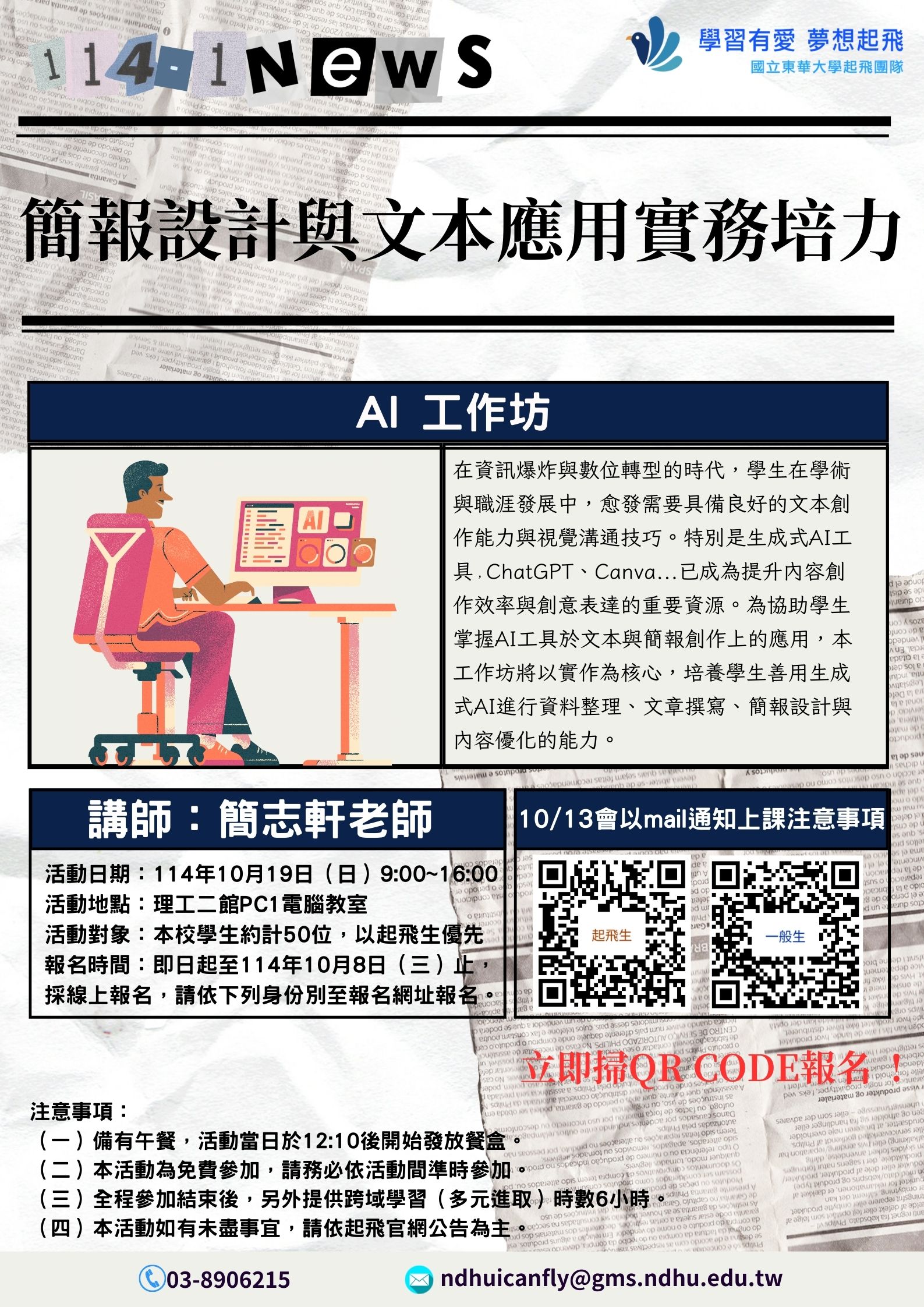 課程及報名資訊:https://icanfly.ndhu.edu.tw/p/404-1162-227758.php
