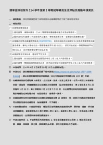 一、退輔會受理114學年度第1學期退除役官兵就學補助生活津貼及獎勵申請,自114年9月1日至10月15日截止(以郵戳為憑)。 二、申請規定詳如附件。