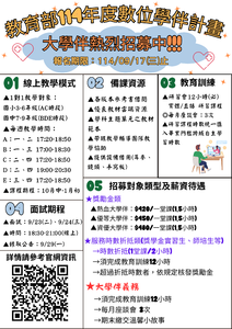 114-1學期數位大學伴熱烈招募!!!