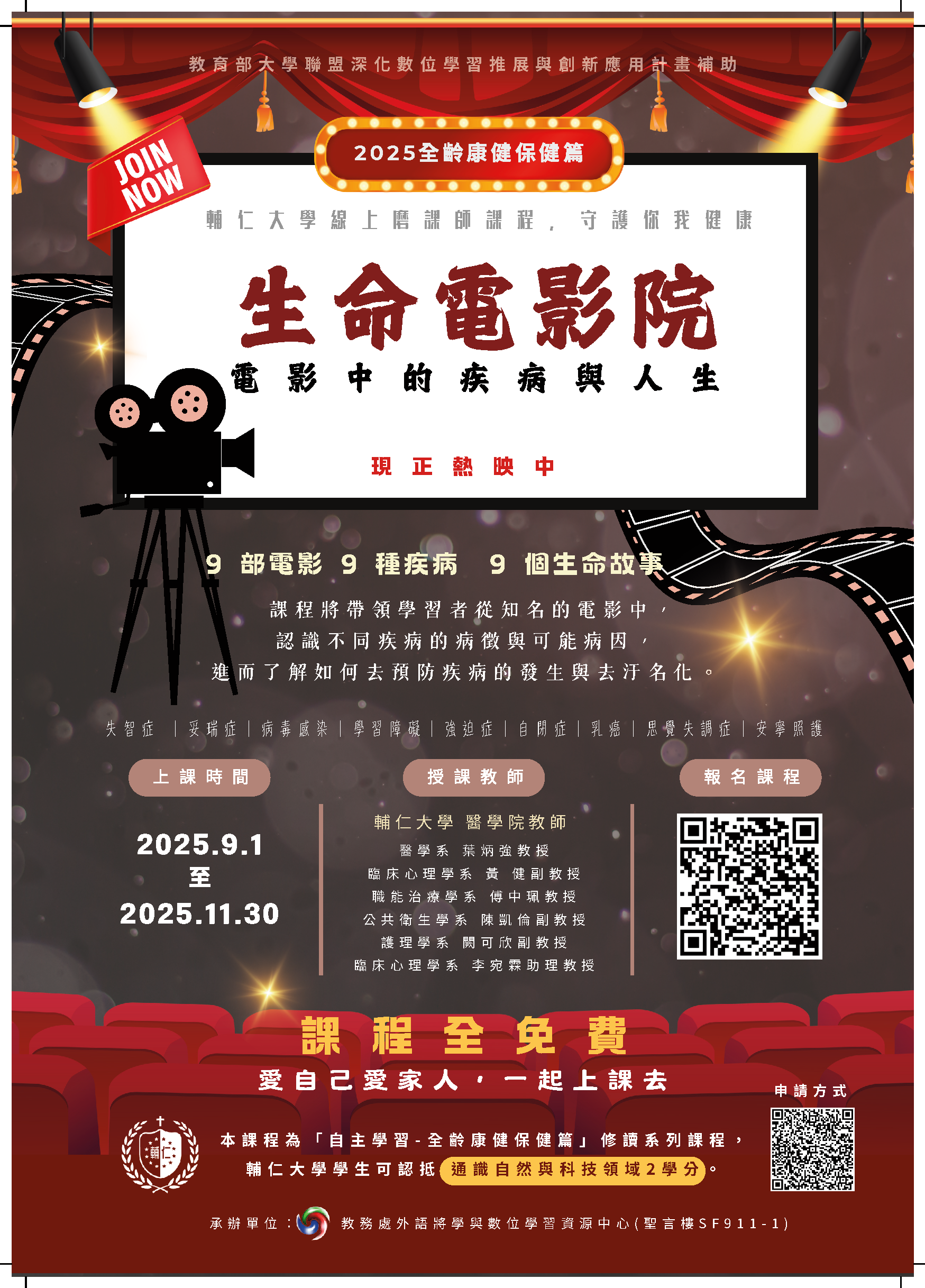 分類: 其他公告 來源: 教學卓越中心 - 王立凡 - lfwang@gms.ndhu.edu.tw - 電話8906422 對象: 全校教師_全校學生 標題: 【訊息轉知】輔仁大學開設7門磨課師(MOOCs)免費線上課程 日期: 2025-09-18  ( 星期四 )  11:21 附檔: 附件1(18).jpg (2 MB)   附件2(7).jpg (4 MB)   附件3(4).jpg (651 KB)   附件4(2).jpg (740 KB)   附件5.png (2 MB)