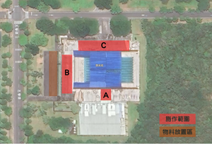 一、配合本校太陽光電系統建置計畫,廠商預定自114 年 10 月 18 日(星期六)起至 114 年 12 月 31 日(星期三)進場施作游泳池看台區太陽光電工程,施工範圍詳見【附圖】。 二、施工區域將設置安全圍設及警示標示,施工期間請勿進入施工區域,以確保人員安全。 三、施工期間造成不便,敬請見諒並配合現場施工管理措施,共同維護校園安全與整潔。 四、聯絡窗口: (一)施工廠商:得禾能源股份有限公司 1、工務負責人:張淵承 電話:0938-392-776 2、工務主任:陳瑞銘 電話:0970-876-932 (二)本校承辦人:張宗玲 電話:03-8906377 五、營繕組施工公告查詢:https://ga.ndhu.edu.tw/p/412-1006-17146.php?Lang=zh-tw