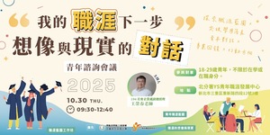 勞動部勞動力發展署北基宜花金馬分署青年職涯發展中心(YS)長期與各大專院校合作,致力於提供多元的職涯發展資源,讓學生更貼近職場趨勢、拓展視野。 中心將於10/30(四)9:30-12:40,辦理【青年諮詢會議】我的職涯下一步:想像與現實的對話 在面對變化快速的就業環境中,許多青年常感到迷惘——學校所學與實際工作落差該如何銜接?如何找到屬於自己的定位? 這場會議中,我們期待能邀請18–29歲青年(在學&在職皆可) 以「學用落差」與「職涯探索」為核心議題,透過對話與交流,理解如何將學習轉化為行動力,迎向未來的多元職場。 歡迎同學們報名參與本次的會議! 詳細活動內容,請參考下方報名連結之表單! ※活動當日提供交通費(以大眾運輸為主)與點心餐盒 📍 活動資訊 ▸ 時間:114年10月30日(四)9:30–12:40 ▸ 地點:北分署青年職涯發展中心(新北市三重區重新路4段12號3樓,鄰近捷運菜寮站) 🗺️ 地圖連結:https://maps.app.goo.gl/pFaNgXZ6oyHL997B9 📝 即日起報名至114年10月27日(一)止 之後我們將以Email通知錄取結果, 請同學們務必詳實填寫報名表,以利活動後續通知! 🔗報名連結:https://forms.gle/aQArKy4aULCyBJ5SA 🌟 誠摯邀請青年共同參與對話, 一起思考如何從「學校學到的知識」走向「真實職場的行動力」,讓未來職涯藍圖更加清晰。 🌱 注意事項: ※活動前將會寄出席確認信,請留意電子信箱 ※活動名額有限,如不克前往務必取消,無故未到將影響之後參與活動權益,請務必配合,謝謝 ※活動當日提供交通費(以大眾運輸為主)與點心餐盒 ※報名出席即同意工作人員於活動期間所拍攝之照片、影片可供YS使用 ※主辦單位保留活動異動的權利,有任何問題歡迎來電 (02)2977-0755 🔥更多徵才、就業、考試、實習、職涯講座訊息,請上學務處畢業生及校友服務組網站🔥 https://rb005.ndhu.edu.tw/p/412-1005-493.php