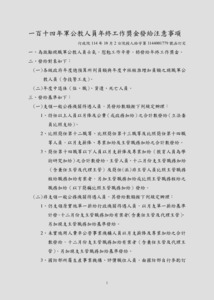 - 附件:檢附行政院「一百十四年軍公教人員年終工作獎金發給注意事項」。