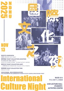 分類: 活動公告 來源: 學務處課外活動組 - 魏綺瑩 - vanessawei@gms.ndhu.edu.tw - 電話890-6233 對象: 全校教職員_全校學生 標題: 【更正】2025國際文化之夜活動及索票相關事宜|【Correction】2025 International Culture Night: Event Information and Ticketing 日期: 2025-11-04  ( 星期二 )  09:06 附檔: 00 POSTER.jpg (318 KB)