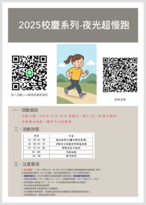 分類: 活動公告 來源: 體育中心 - 楊永義 - yyy@gms.ndhu.edu.tw - 電話0911765302 對象: 全校教職員_全校學生_退休教職員_教職員眷屬 標題: 《2025校慶系列超慢跑活動》 日期: 2025-11-13  ( 星期四 )  08:34 附檔: 2025校慶系列超慢跑活動宣傳online.pdf (3 MB)