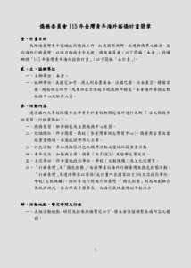 一、為增進臺灣青年認識政府僑務工作,拓展國際視野,並搭建與僑界之橋梁,本會自106年起推動「臺灣青年海外搭僑計畫」,選送臺灣青年赴海外各地參訪見習。 二、本計畫明(115)年規劃賡續辦理,將甄選18至30歲、具中華民國國籍之國內大專校院在學學生於暑假期間前往7個國家地區進行為期7日之僑務參訪見習,行程重點包含僑務見習、認識僑社、特色活動、青年交流、主流參訪、行銷臺灣及僑見創藝等。 三、「115年臺灣青年海外搭僑計畫」報名簡章業置於官方網站(網址:https://gov.tw/GVG)首頁「搭僑計畫」專區/「115年計畫」供下載。
