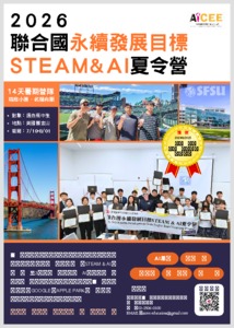 分類: 活動公告 來源: 人事室 - 李文元 - liveliving@gms.ndhu.edu.tw - 電話6059 對象: 全校教職員 標題: 社團法人臺灣國際文教創新交流協會與美國舊金山州立大學共同主辦「2026聯合國永續發展目標暨STEAM&AI夏令營」活動,轉知本校教職員以為有適齡(國九至高三)子女者參考。 日期: 2026-02-02  ( 星期一 )  11:45 附檔: 來函.pdf (465 KB)   附件_活動資訊.pdf (8 MB)